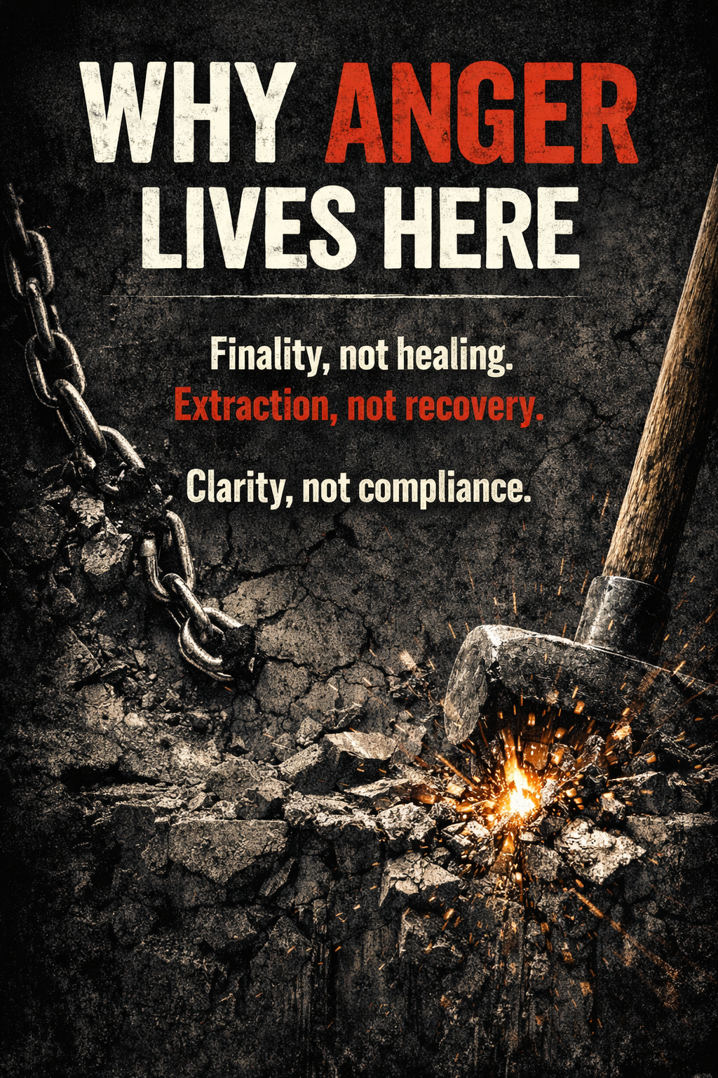 Anger lives here because anger is what remains when silence stops paying its rent.